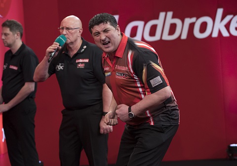 Van Gerwen war bereits im letzten Jahr in der ersten Runde ausgeschieden und er lag schnell mit 2:7 beim diesjährigen Turnier gegen King hinten obwohl er das erste Leg des Spiels mit einem 170er Checkout gewonnen hatte. Van Gerwen kämpfte sich zum 5:7 zurück, aber er konnte King nicht bremsen, der mit einem sensationellen 141er Checkout auf 9:5 davon zog. Im folgenden Leg verwarf er einen Matchdart und van Gerwen konnte sich mit einem 108er Finish kurzfristig im Spiel halten. Aber schon im nächsten Leg machte King alles klar und gewann zum ersten Mal seit den Halbfinalen des Masters 2014 gegen den dreifachen Weltmeister. Keine gute Woche für van Gerwen, der bereits am Donnerstag in der Premier League gegen Wade eine Niederlage kassiert hatte.