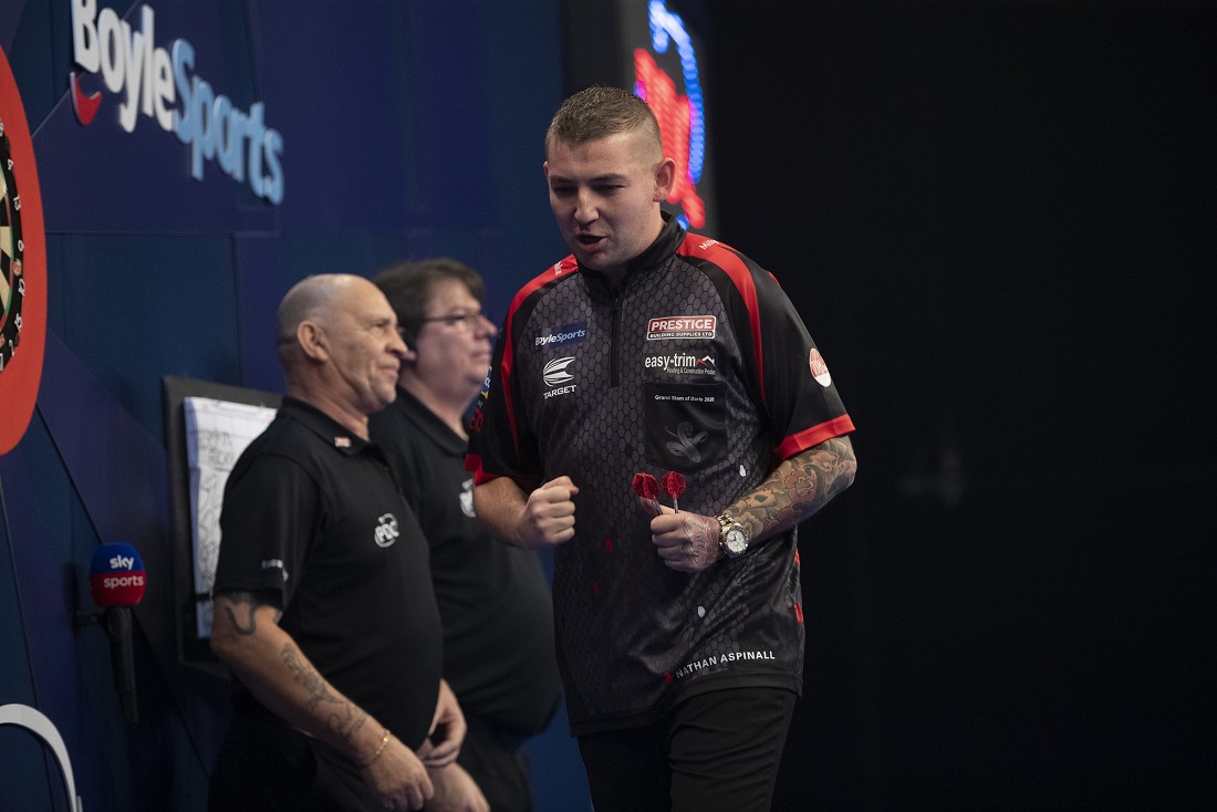 Nathan Aspinall überstand zum ersten Mal die Gruppenphase - er schlug im entscheidenden Spiel Ricky Evans überzeugend mit 5:1. Trotz sechs 180 von Evans konnte der Premier League Finalist das Spiel gewinnen und er hatte im ganzen Spiel lediglich drei Fehlwürfe auf die Doppel.