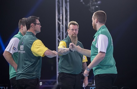 Australien gewann das Aufeinandertreffen ehemaliger Finalisten - Simon Whitlock und Damon Heta, der Kyle Anderson ersetzte, schlugen die Iren William O'Connor und Steve Lennon mit 5:2.