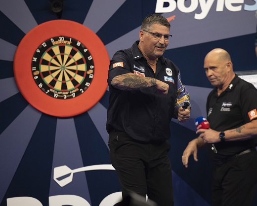 Gary Anderson begann seinen Weg in Richtung auf einen ersten World Grand Prix Titel mit einem bequemen 2:0 Sieg über den als Nummer fünf gesetzten Rob Cross in einem Spiel, dass der Höhepunkt der ersten Runde hätte sein sollen. Anderson, der 2016 im Finale stand, übernahm bereits im ersten Leg des Spiels das Kommando gegen einen Cross, der immer noch seine Form sucht. Er konnte den Schotten nie in Schwierigkeiten bringen, der versucht einen der wenigen TV Titel, die er noch nicht gewinnen konnte, zu holen.