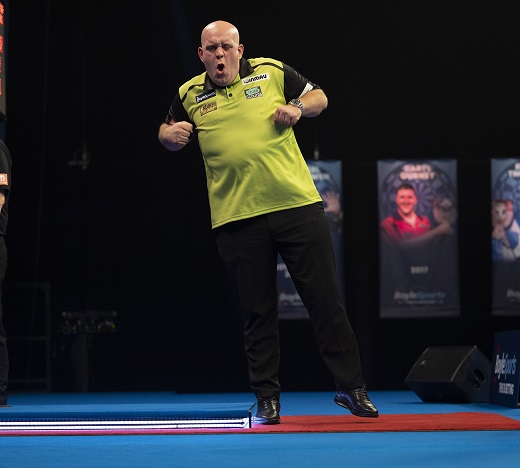 In einem dramatischen Erstrundenspiel zeigte ein lebhafter van Gerwen eine der Vorstellungen des Abends. Der Niederländer war aus den Startblöcken gestürmt und hatte seinen polnischen Gegner im ersten Set mit einem Durchschnitt von über 109 beiseite gefegt. Aber Ratajski zeigte Widerstand und das Spiel ging ins entscheidende dritte Set. Ratajski ging mit 1:0 in Führung, verpasste aber im folgenden Leg drei Darts auf den Leggewinn und van Gerwen antwortete mit einem 103 Checkout. Die nächsten beiden Legs teilten sich die beiden Spieler und das Spiel ging in ein von van Gerwen dominiertes Entscheidungsleg, in dem er sich mit einem 84 Finish den Sieg holte.