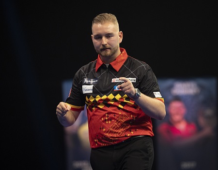 Der 26-Jährige wird in Runde zwei auf Dirk van Duijvenbode treffen, der ein schwaches Spiel gegen einen völlig außer Form spielenden Mensur Suljovic mit 2:1 gewinnen konnte.