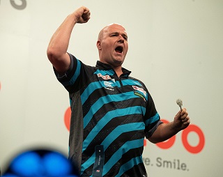 Der dreimalige Grand Slam Sieger Michael van Gerwen hatte einen Durchschnitt von 102 und verpasste bei seinem sauberen 5:2 Sieg gegen Nachwuchsspieler Nathan Rafferty nur ein einziges Doppel.