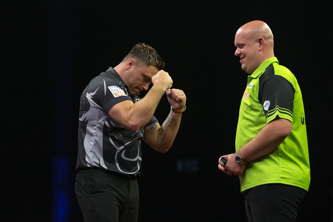 Van Gerwen holte sich mit seinem dritten Final-Einzug in vier Wochen drei Punkte für die Tabelle - er schlug Peter Wright und Michael Smith und ist jetzt wie Jonny Clayton schon zwei Spieltage vor Ende der Liga Phase für die Play-Offs qualifiziert.