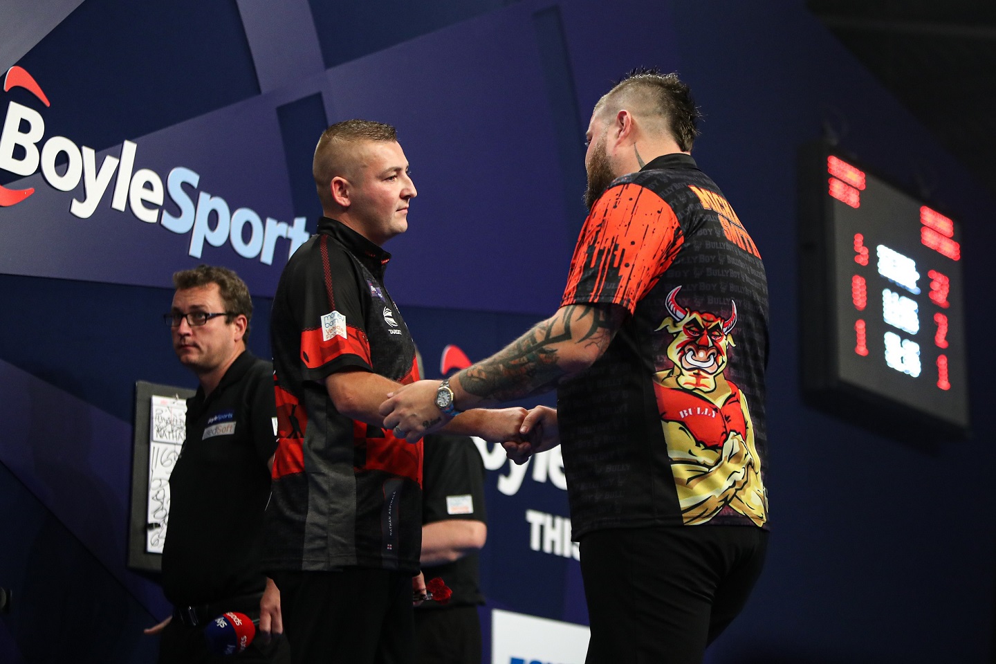Nathan Aspinall war der letzte Sieger der ersten Runde, er setzte sich gegen Michael Smith durch, obwohl er in der Hälfte des Spiels eine Schwäche Phase hatte. Aspinalls Gegner in der zweiten Runde wird Danny Noppert sein.