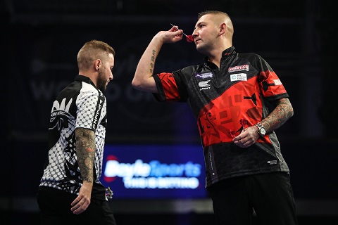 Auch Nathan Aspinall gelang ein bemerkenswertes Comeback. Er lag bereits mit 0:2 in Rückstand gegen den UK Open Champion Danny Noppert, überlebte dann vier Matchdarts und sicherte sich anschließend selbst einen Platz in seinem zweiten World Grand Prix Viertelfinale.