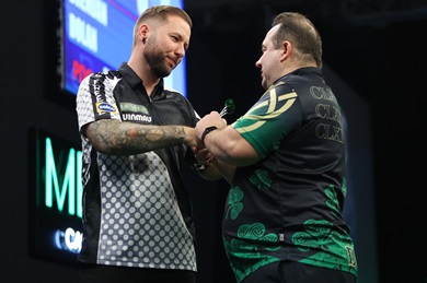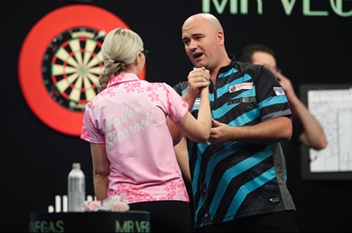 "Alle Achtung vor Beau! Ich hoffe, dass sie sich keine Tour Card sichern wird, denn dann werden wir alle Probleme bekomme," witzelte Heta, der in seinem nächsten Spiel gegen den dreimaligen Grand Slam Sieger Michael van Gerwen antreten wird. "Diese hohen Finishs waren sehr wichtig. Jedes Checkout über 100 Punkte musste sitzen. Wenn ich nicht getroffen hätte, wäre ich weg vom Fenster gewesen. Beau war heute Abend toll. Wir wissen alle was sie kann und ich zittere immer noch wie verrückt. Dass ich über die Ziellinie kam war enorm wichtig für mich."