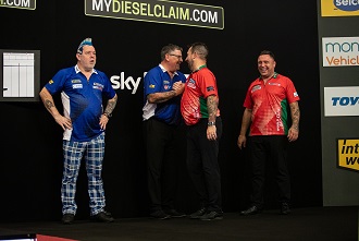 "Das ist einfach nur fantastisch - was für ein Gefühl," sagte ein begeisterter Clayton. "Wir sind schnell ins Spiel gekommen und blieben in Führung. Ich glaube nicht, dass Gary und Peter ihr bestes Spiel spielten, aber wir haben unseren Job erledigt. Der Glaube in einander, das Vertrauen in einander, funktioniert und wenn wir loslegen, legen wir richtig los - heute war ein guter Abend. Gerwyn ist mein bester Kumpel auf der Tour und er ist ein brillanter Kapitän."