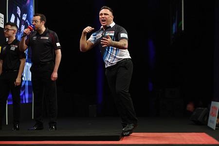 Bei seinem 6:1 Sieg im Viertelfinale gegen Chris Dobey spielte er einen Durchschnitt von 105 und warf fünf Maxima, einen Neun-Darter verpasste er nur knapp.