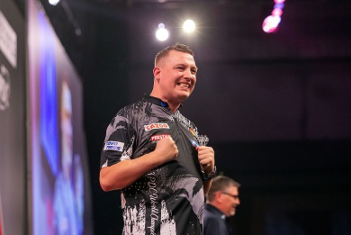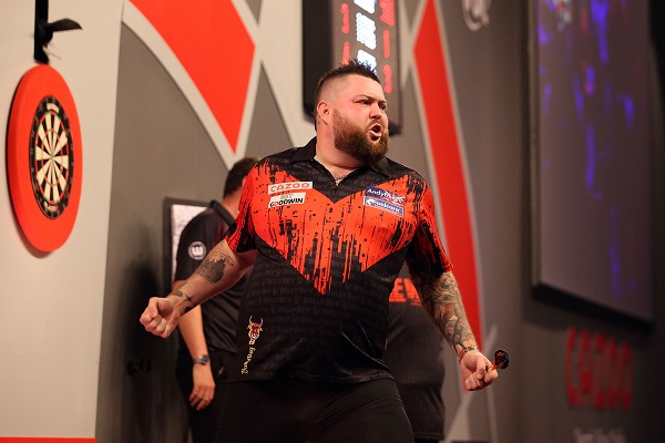 Der zweimalige Weltmeisterschaft Finalist Michael Smith kämpfte sich von einem 1:3 Rückstand zu einem 4:3 Sieg gegen Martin Schindler. Es war ein Thriller in sieben Sets, in dem der Deutsche zehn Maxima warf.