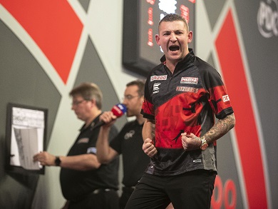 Heta schlug den zweimaligen Weltmeister Adrian Lewis mit 3:0 während Aspinall bei seinem 3:1 Sieg über Boris Krcmar zu kämpfen hatte.