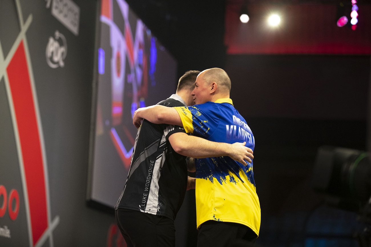 Die Nummer 1 der Welt Gerwyn Price wird seine Kampagne gegen Luke Woodhouse beginnen. Dieser konnte Vladyslaw Omelchenko, den ersten ukrainischen Spieler, der sich für die Weltmeisterschaft qualifizieren konnte mit 3:0 besiegen. Es war eine professionelle Vorstellung von Woodhouse, der drei Finishs von über 100 Punkten zeigte, aber das höchste Finish des Spiels kam von Omelchenko, der die Zuschauer mit einem 143 Finish begeisterte.