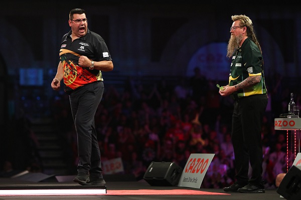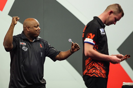 Gates konnte die Herzen der Zuschauer bei seinem 3:1 Sieg über den Niederländer Geert Nentjes gewinnen, er tanzte sich in die zweite Runde und gewann dazu drei Sets in Folge. Der Amerikaner hatte keinen gute Start ins Spiel, machte aber am Ende mit Finishs von 100, 111 und 128 Punkten alles klar und spielt in Runde zwei gegen den ehemaligen Lakeside Champion Stephen Bunting.