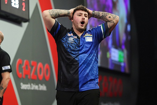 Früher am Tag verpasste der junge Lewy Williams nur ganz knapp einen Neun-Darter bei seinem 3:0 Sieg über Niels Zonneveld.