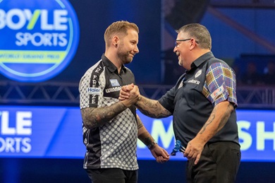 The BOYLE Sports World Grand Prix continues with a bumper night of semi-final action on Saturday, as Humphries takes on Noppert in the evening's opener, before Littler and Clayton renew their rivalry on the big stage.