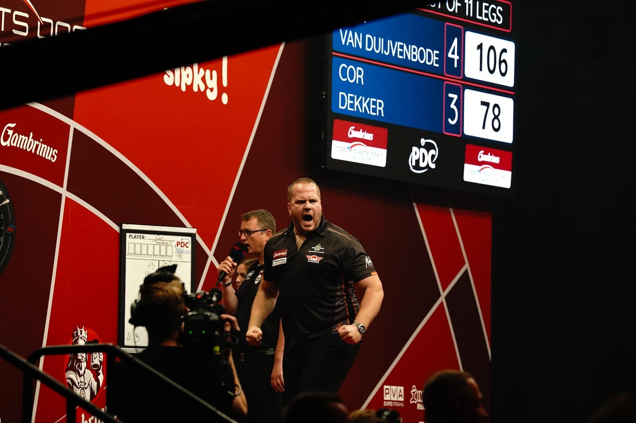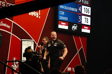 The first quarterfinal between Danny Noppert and Gary Anderson ended 3:1 for the Dutchman. Anderson only won the first set, but the last two sets both went into a deciding leg. After that Dirk van Duijvenbode played against Jonny Clayton.