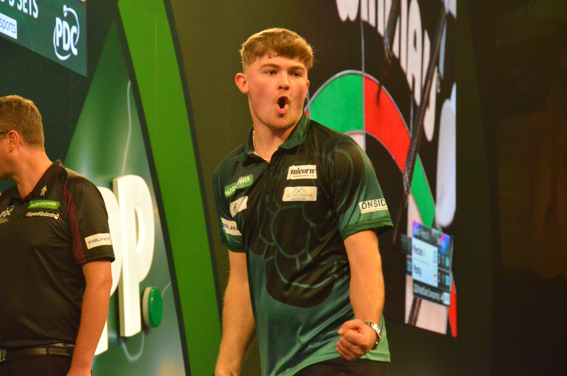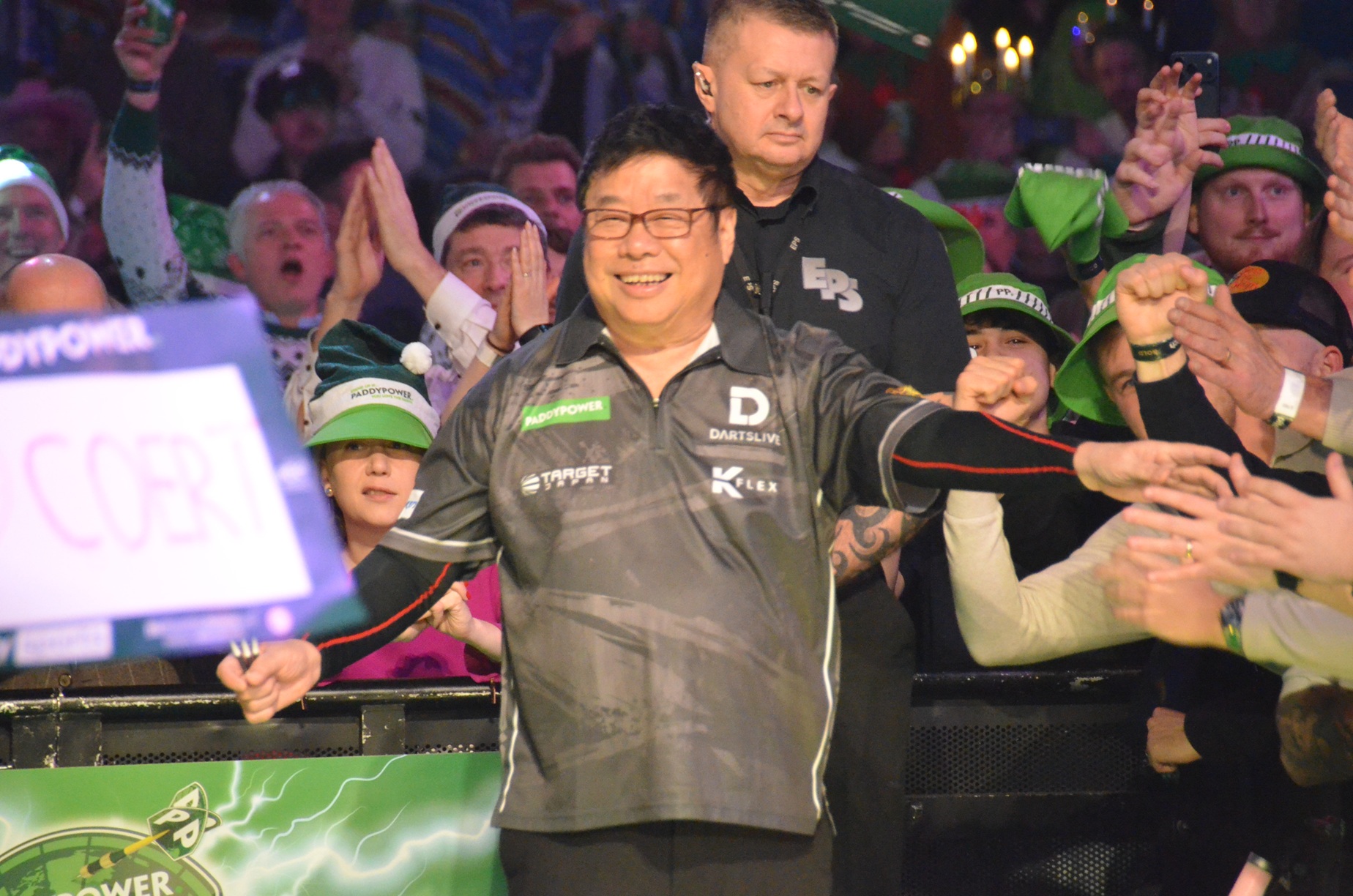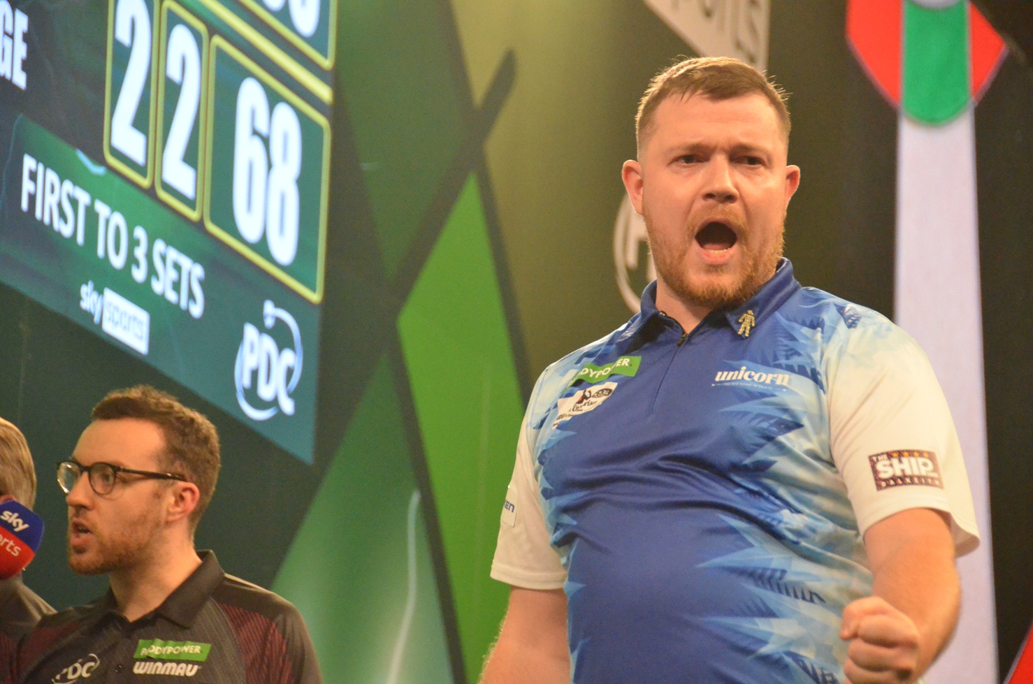 the winner of the first round match between Kevin Doets and Matthew Dennant. So the Kenyan is not only the first ever player from Kenya in the Ally Pally but as well the first ever Kenyan who won a match in the World Championship.