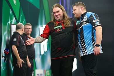 Elsewhere, debutant Manby celebrated a quick-fire 4-2 victory over Ricky Evans to set up a fascinating showdown against European Champion Gian van Veen. The Huddersfield youngster struggled on the outer ring in the opening exchanges, before winning nine of the last 12 legs to continue his breakthrough run in the capital, after also defeating Cameron Menzies and Adam Sevada.