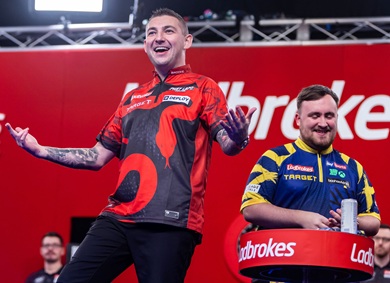Having swept aside Karel Sedlacek and Richard Veenstra to reach Round Three, Aspinall battled his way into the semi-finals with consecutive 10-8 wins over Danny Noppert and Josh Rock.