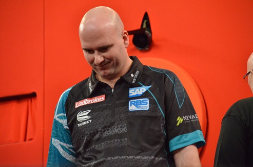 The evening-session started with a tense match between Dirk van Duijvenbode and Glen Durrant which van Duijvenbode won. Durrant starts to play better but is still far from his best. The next match between Gerwyn Price and Mervyn King was disappointingly one-sided and Price won 4:1. In the last match of the Fourth Round Dave Chisnall surprised with an outstanding performance and stormed through the first three sets averaging far over 100 and with a hitting rate on the doubles of more then eighty percent. Dimitri van den Bergh managed to stop him and win the next two sets in which Chisnall was no longer as strong, but he was too far behind and Chisnall won 4:2.