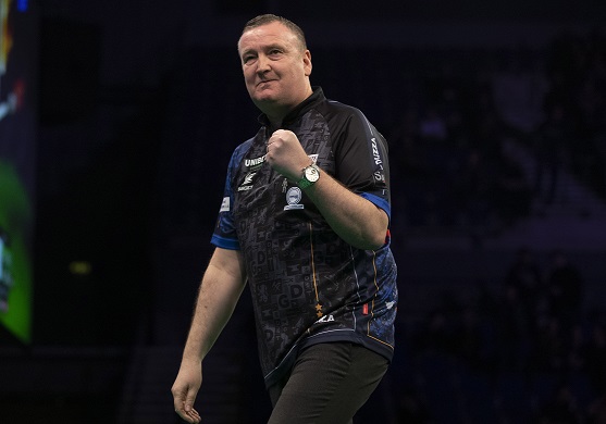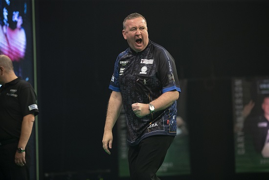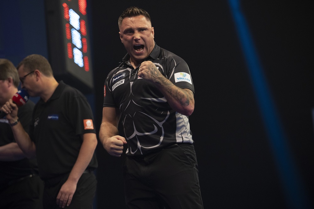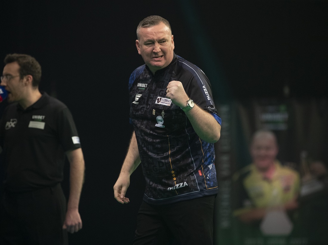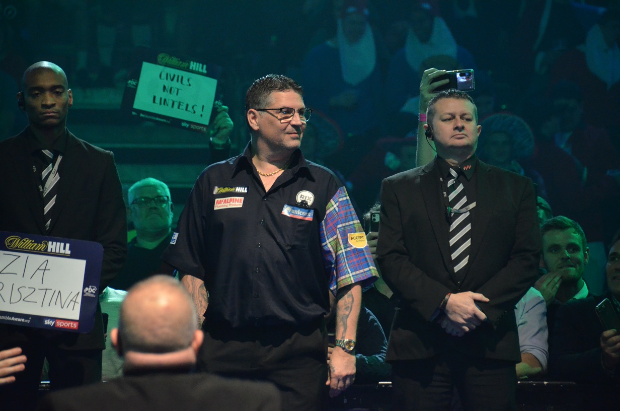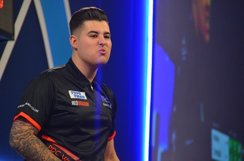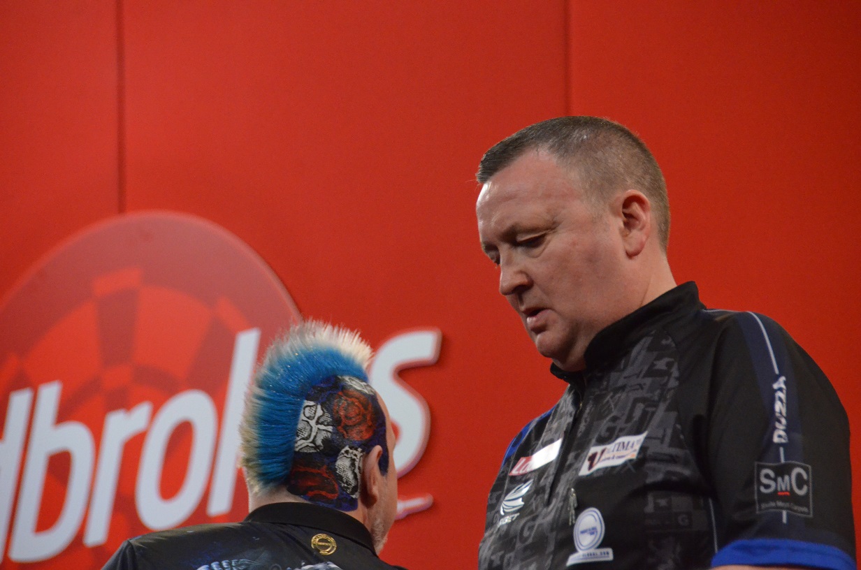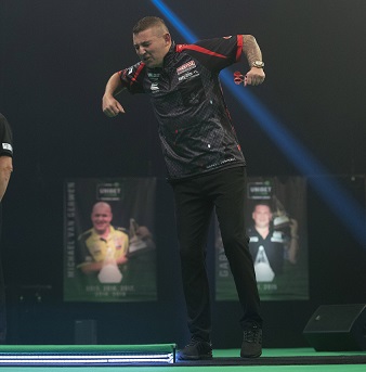 There were no big upsets though slightly surprisingly Nathan Aspinall was eliminated by Vincent van der Voort. In the afternoon-session both Mervyn King and Dirk van Duijvenbode shone with averages of 103.47 and 104.09 and high hitting rates at the doubles at their 4:0 wins. In the evening session Gerwyn Price won a close hard fought and high class match 4:3 against Brendan Dolan and a clearly improved Glen Durrant fend off a comeback from Danny Baggish and defeated him 4:2.