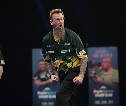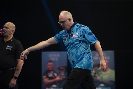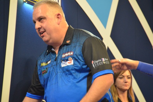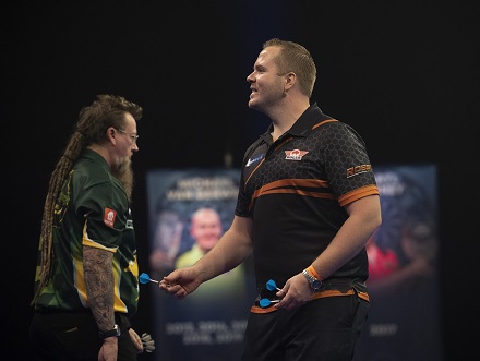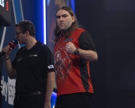 As a result only four first round matches were played today and only the first one was a hard fought match which Nich Kenny won 3:2. Beside Kenny Jason Lowe, Keegan Brown and a little bit surprisingly Matthew Edgar progressed into the Second Round, Edgar with an outstanding hitting rate on the doubles of 75 percent. In the Second Round match of the afternoon Vincent van der Voort came from 0:2 down to a 3:2 win over Ron Meulenkamp; against Ryan Searle a strong playing Jeffrey de Zwaan despite throwing nine 180s had no chance and lost with 0:3 and in the last match of the night Jonny Clayton progressed with a grinded out 3:1 win against into the Third Round.