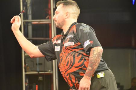 Once again Paul Lim stole on the fourth day of the tournament all other players the show and defeated Luke Humphries - who was not able to cope with Lim's slow throw - in a very close match with 3:2. It was not the only hard fought match of the day - Wayne Jones defeated Ciaran Teehan as well with 3:2, Dirk van Duijvenbode trailed already 0:2 against Bradley Brooks but turned the match around to win 3:2 and John Henderson battled against Marko Kantele to get a 3:2 win. The other four matches were really one-sided affairs and Mickey Mansell, Darius Labanauskas, Adam Hunt and a commanding James Wade all won their matches 3:0. James Hughes was the first seeded player who was eliminated, he lost to Adam Hunt.