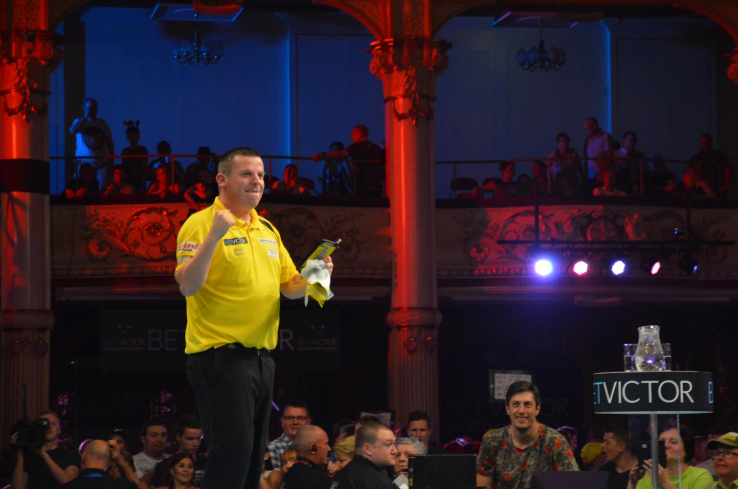 Robbie Green, born 1974, was on his birthday already eliminated. But to be sure his strong performance against Phil Taylor was nevertheless a reason to celebrate. Contrary to Thornton Green first was a PDC player till 2007 when he was testes positive of drugs (Marihuana/. After that he had to survive financial troubles as his sponsor left him and he switched to the BDO. He was not really successful there but reached 2014 the semi-finals of the BDO World Championship. After that he decided to return to the PDC and took part in Qualifying School 2015 and got a Tour Card by the ranking. He from time to time impresses with outstanding matches, but success in big tournaments didn't happen so far.