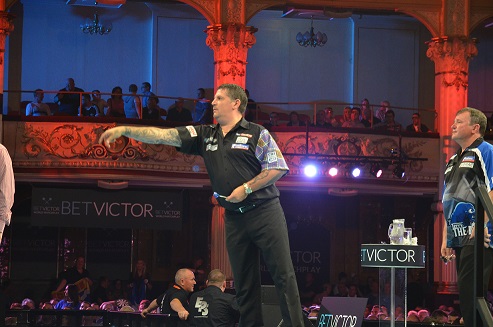 In the third match Phil Taylor stood again at the Oche and after his close win over Robbie Green I wondered how his second round match against Mensur Suljovic would go. Suljovic was no easy opponent and played well but this time he was just not good enough for Phil Taylor who was clearly more convincing then in his first match. All in all an easy win for Taylor.