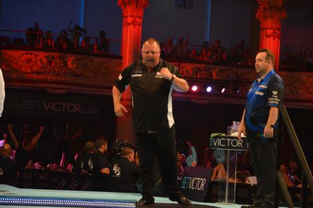 After there had been a morning thunderstorm in Blackpool it had cooled down a little bit and was no longer as hot in the Empress Ballroom either. The other four second round matches were played in the evening and the evening started with the match between Mervyn King and Brendan Dolan. First it was a rather close match and it was 5:5 at the second brake. But afterwards Dolan more and more got under pressure and was no longer clinical with his doubles. Due to some mistakes of King he managed to draw 8:8 but after that Dolan's scores were just not good enough to keep up and King won deservedly 11:8.