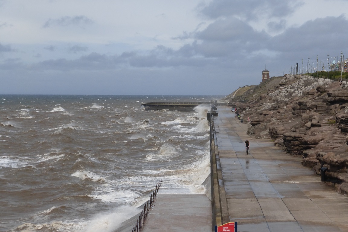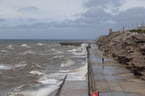 cyclists which was not astonishing. The waves often pounded over the balustrade of the promenade and some of