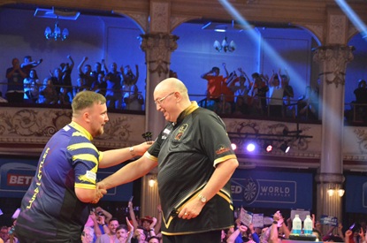 Similar to the semi- finals Littler had a rather slow start into the match and again he had some double trouble as well. Wade had a 5:0 lead before the first break. After that a completely different Littler turned up and won the second session 5:0 Wade didn't give in - seemingly unimpressed he battled on and got the lead back at 11:9. Littler once again found another gear though by now both players were no longer clinical on their doubles and Wade missed his chance to draw 12:12. That probably was crucial as after that Wade managed to win only two more legs while Littler threw a host of 180s and won the in the end a little bit one-sided final 18:13.