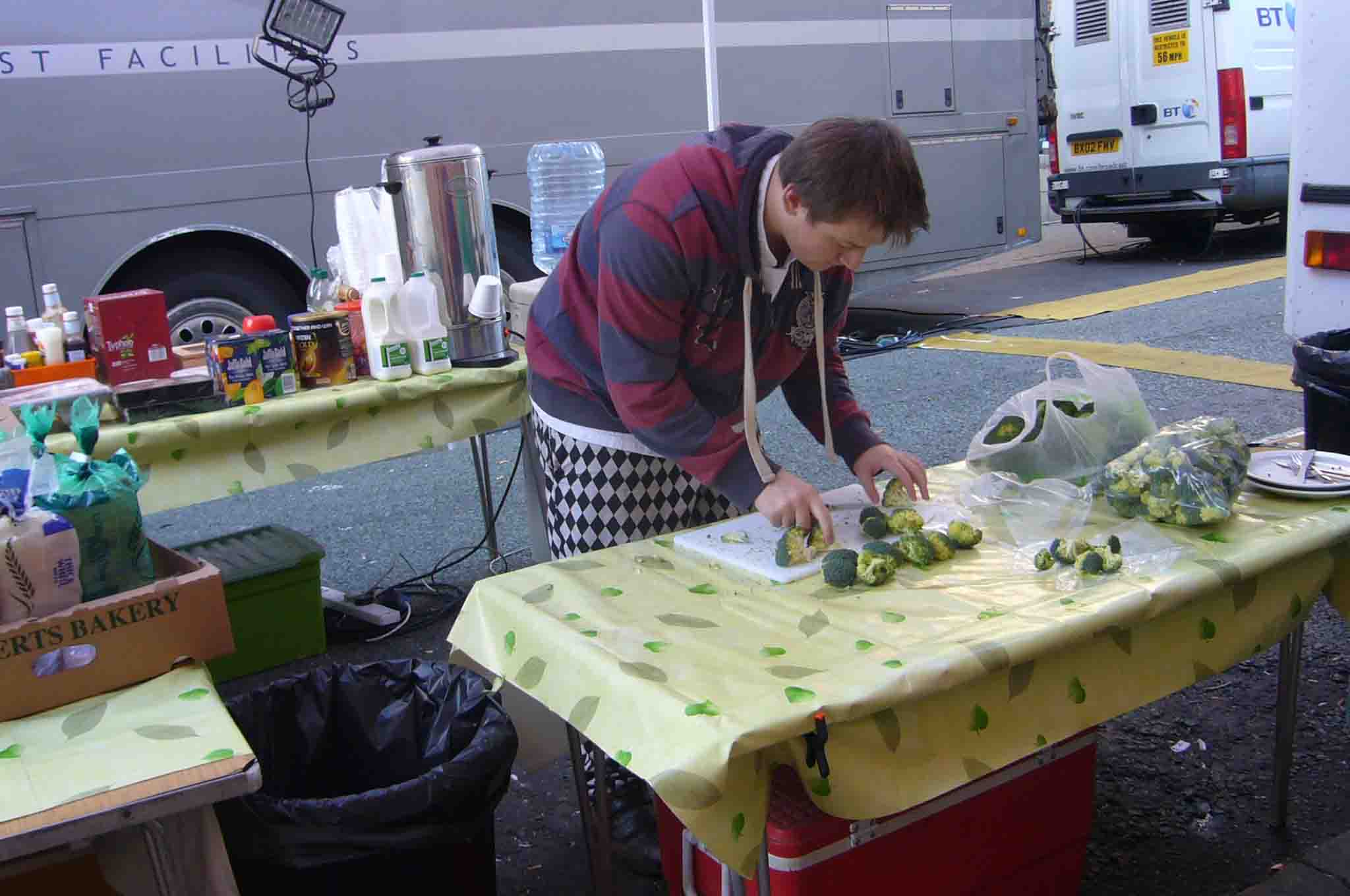 and ham and sandwiches, there were dozens of bananas, one day he prepared plates with cake and on my last day in Wolverhampton he chopped broccoli.