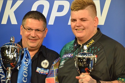 But then you could almost see how Anderson pulled himself together and took the gloves off. He rung rings around the young player and Cadby grew more and more desperate. He tried to slow down the match but had no chance at all. It looked that while throwing 180 in one of the last legs Anderson's back problems returned as Anderson tried to loosen his back between his throws. Beside he threw even faster now like he wanted to finish the job as fast as possible and only a few legs later he had won his first UK Open title. Cadby looked inconsolable and had to blink back his tears while Anderson celebrated.