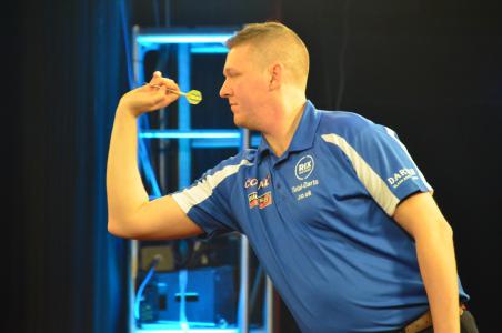 Robert Owen at the start of the second semi-final looked somehow intimidated though Corey Cadby really greeted him very kindly. But perhaps Owen had started to mull over what had happened to him so far. Cadby this time had no slow start into the match as in some of his matches before and looked very focused. When the players went into the first break he led 5:0 and Owen never had had a single dart on a double. Cadby played on after the break as before - well not really because Owen managed to get his first leg on the board before the second break. The first leg after this break got the Australian but Owen had decided not to give in yet and managed to win to more legs which he duly celebrated. But then Cadby finished the match despite a phone started to ring just as he was about to release his last dart. Cadby turned with a smile to the small crowd, refocused and hit the winning double. After a short discussion both players threw some of their flights into the cheering "crowd" .