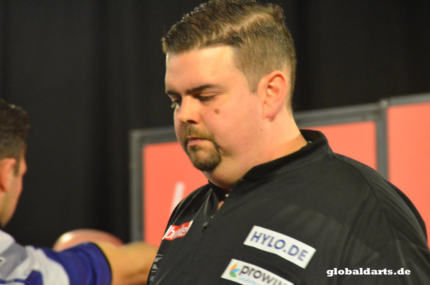 It was really interesting to see how many young talented players were around and made it awkward for the older established players. But all in all in this UK Open the well known and established players dominate. Thanks to the draw we had in the second round two Premier League pairings - Peter Wright eliminated Glen Durrant and Michael van Gerwen threw the reigning champion Nathan Aspinall out of the tournament - both were thrilling high class games. Among the outsiders who survived the first day were even two Germans - Gabriel Clemens and Martin Schindler. Other outsiders were Alan Tabern - who sits at the moment on place 98 of the Order of Merit and who won four matches on the first day - and Jason Lowe who got a Tour Card in January and never before played on stage though he already took part in the UK Open 2018 and reached the last 32.