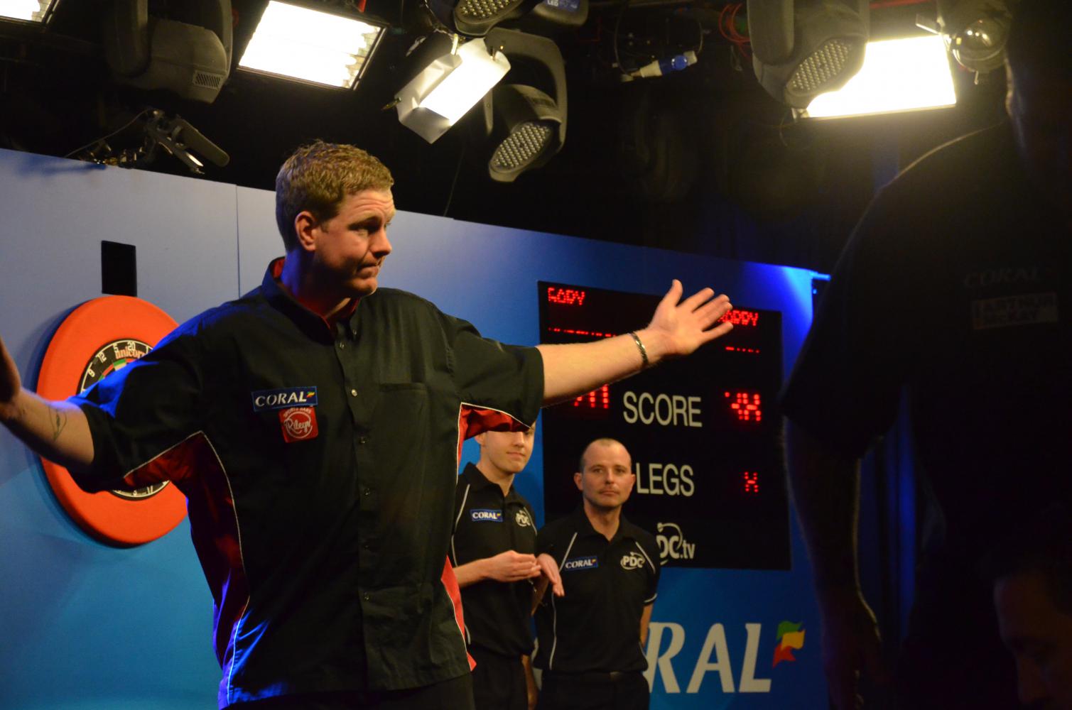 On the second day of the UK Open both Smith and Roy were no longer in the tournament. But not only the number of participants was reduced - the number of boards was diminished as well. In the afternoon session only two boards could be found in Center Stage and the fifth round in the evening was only played on stages one and two in the Arena an in Reds. So most of the crowd could now be found in the Arena which looked very much sold out. Around 5000 people fit in and all were cheerful and colourful dressed up. The atmosphere was great - in all three venues.