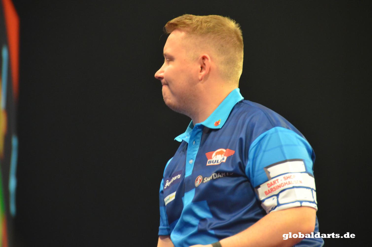 In the first match of the tournament with Martin Schindler a German player stood at the oche. Schindler already took part last year in the event and won one of his matches. This year so far had been a rather up- and down year for Schindler and he had with Nathan Aspinall a very strong opponent. And so it took some time for him to settle in the match. In the last and deciding leg of the match both players had a chance to win the leg and both had some problems to hit their doubles. In the end Aspinall found the double 2 and won the match 5:0.