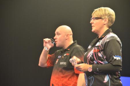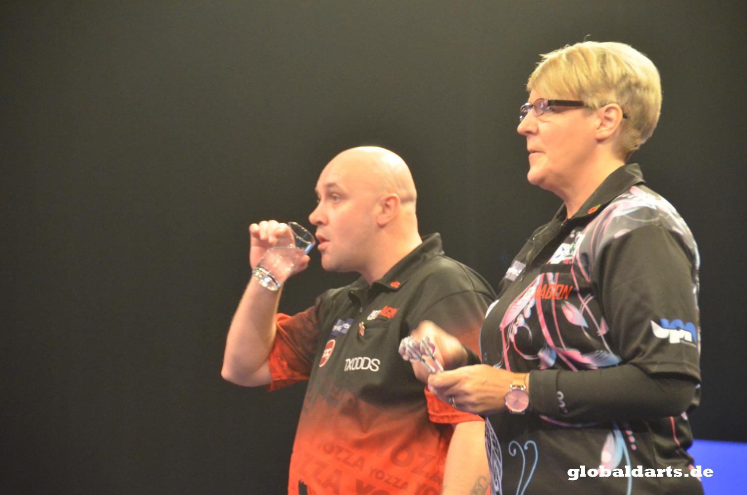 The Groups E-H played in the afternoon and first on stage were the PDC players Brendan Dolan, Danny Noppert and Jamie Hughes who all three rehabilitated at the expense of their BDO colleagues Richard Veenstra, Wayne Warren and Lisa Ashton. Veenstra, Warren and Ashton are all eliminated from the event after their 1:5 defeats. Dolan, Noppert and Hughes still have a chance to qualify. All three matches were rather one-sided - and I don't have match to tell. Only some words about Lisa Ashton - Ashton seemed to be even tenser in her second match as she had been in her first and she played worse as well. Might be tomorrow we'll have the chance to see the real Lisa Ashton.