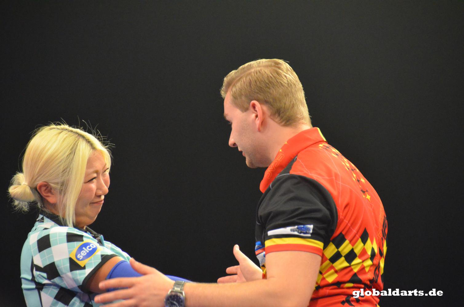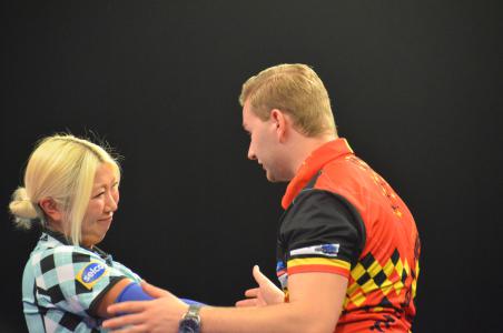 The last of the losers was Dimitri van den Bergh who played against Mikuru Suzuki and he played far better then in his first match after he had overcome his nerves. Already before the match he had told he felt a little bit unsure playing against a woman. Suzuki had almost the same average as in her first match but like Ashton looked not as determined and confident in her second match.