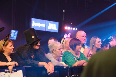 Jamie Hughes, a real Black Country boy, who was in action on the third day of the tournament, wears the flag of the Black Country on his darts-shirt.