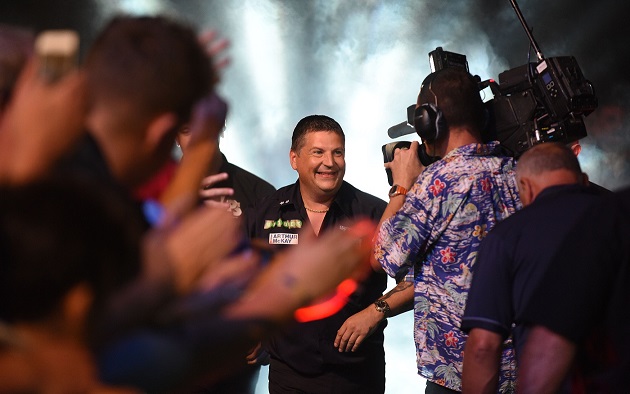 The eight-player, 250,000 pound tournament began at the Motorpoint Arena as the stars completed their first two of three group matches on Saturday as the PDC's first BBC-televised tournament began in style.