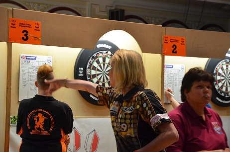 There were eight groups for the women this year and only four places in the quarterfinals on grab so the board winners had to play against each other. It were Maria O'Brien and Trina Gulliver from England, Australian Corrine Hammond and Vicky Pruim from Sweden who qualified. The women's quarterfinals will be played on the third day of the World Masters. Big names like Casey Gallagher, Rachel Brooks and Ann-Louise Peters couldn't qualify this year. A little bit annoying in our German view: Steffi Rennoch and Steffi Lück had to play against each other in the last 16. Steffi Rennoch won but lost in the last eight against Australian Corrine Hammond. The quarterfinals draw didn't take place yet but I think in the women's event the seeded ladies Lisa Ashton, Deta Hedman, Aileen de Graaf and Anastasia Dobromyslova will turn out to be the stronger players. Might be Anastasia could be some kind of uncertain prospect, but the qualifiers will need a good day nevertheless to beat her.